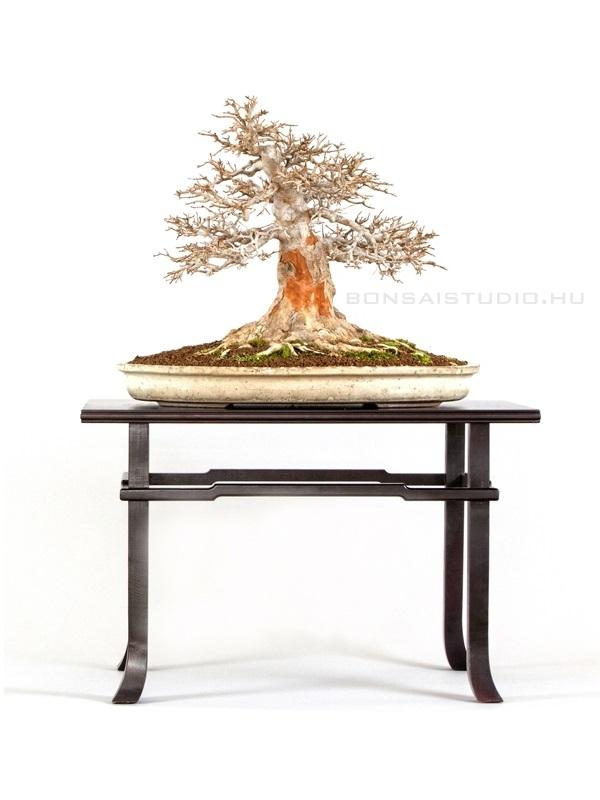 40 cm-es Acer buergerianum, Háromerű juhar, nagyon impozáns fa, csodálatos, elefánttalpnak becézett nebarival, rendkívül értékes, bézs színű japán tokoname bonsaitálban. GardenExpo bonsai kiállításán bemutatott növény . Az ágrendszere nagyon szépen kialakított.